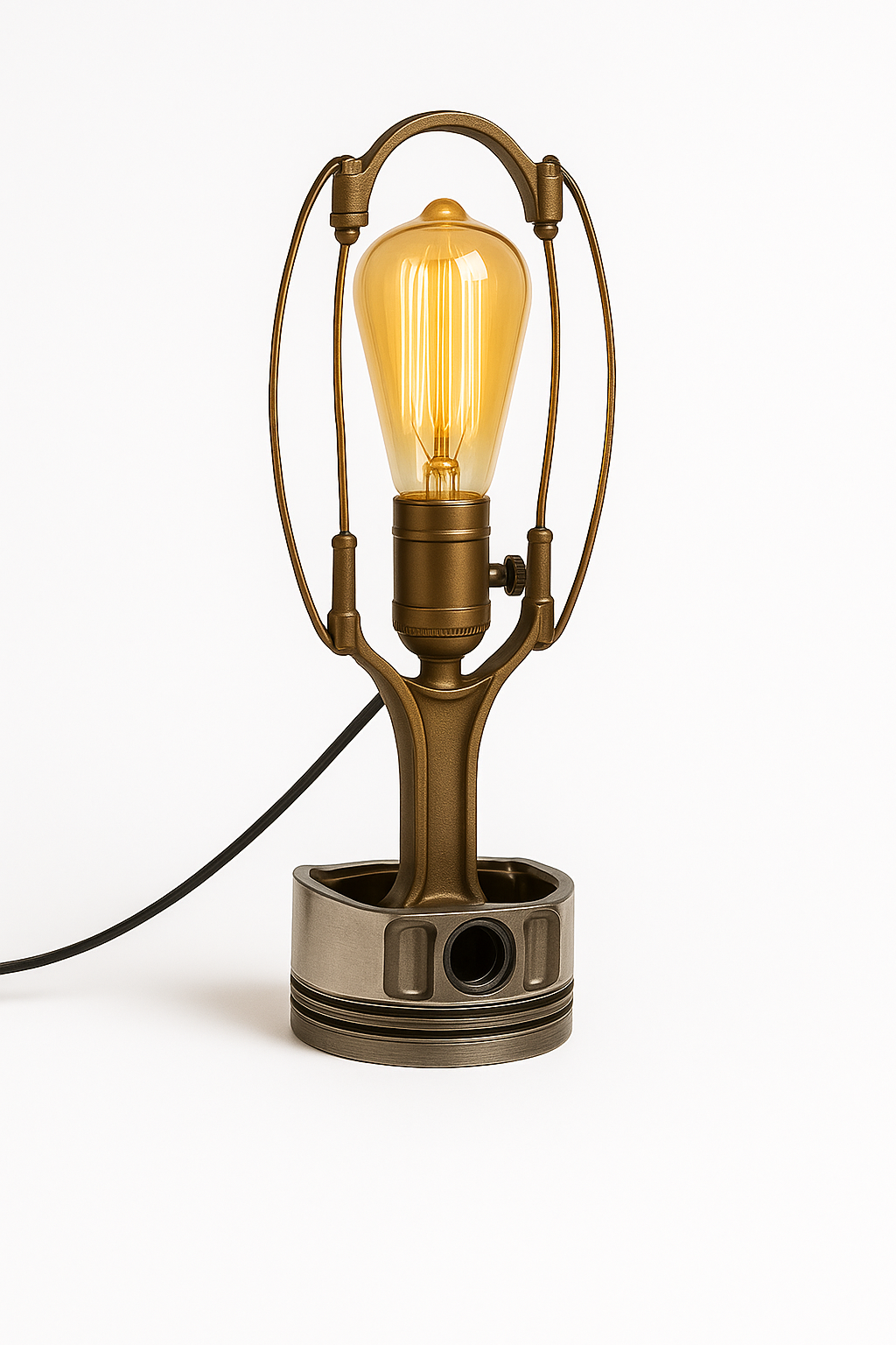 Steampunk-inspired design with integrated lighting.